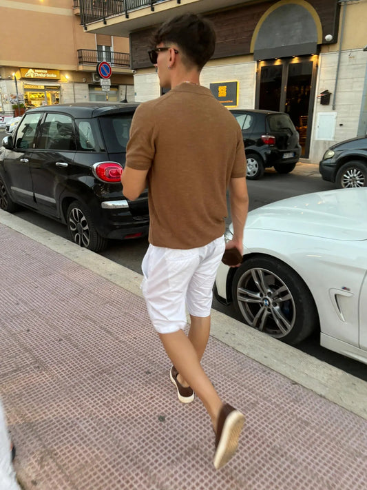 Maglietta Polo Maniche Corte Slim Con Bottoni Caramello - Old Money Style